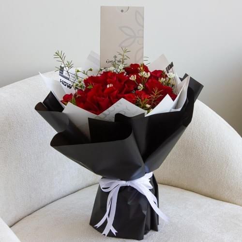 Des roses rouges soigneusement sélectionnées, symboles d'amour et d'engagement, présentées dans une composition élégante à la hauteur de ce moment si particulier. Un cadeau qui exprime des sentiments profonds sans un mot.QuantitéBientôt disponible